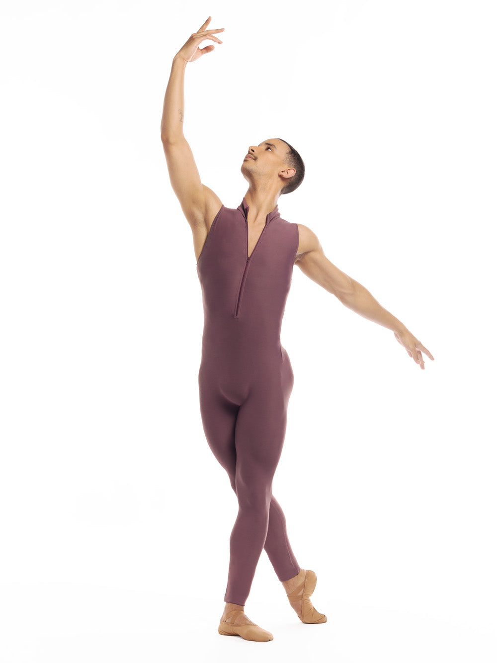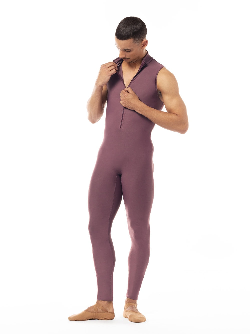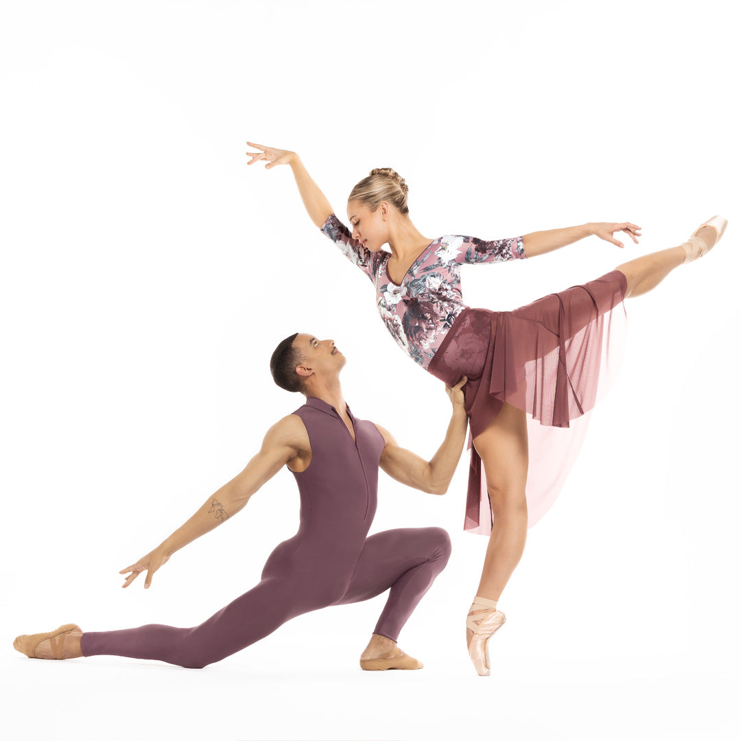 Everyone loves a zip-front unitard, especially ours! The Logan Unitard features our soft Mauve fabric, a sleeveless design, and an ankle length leg.