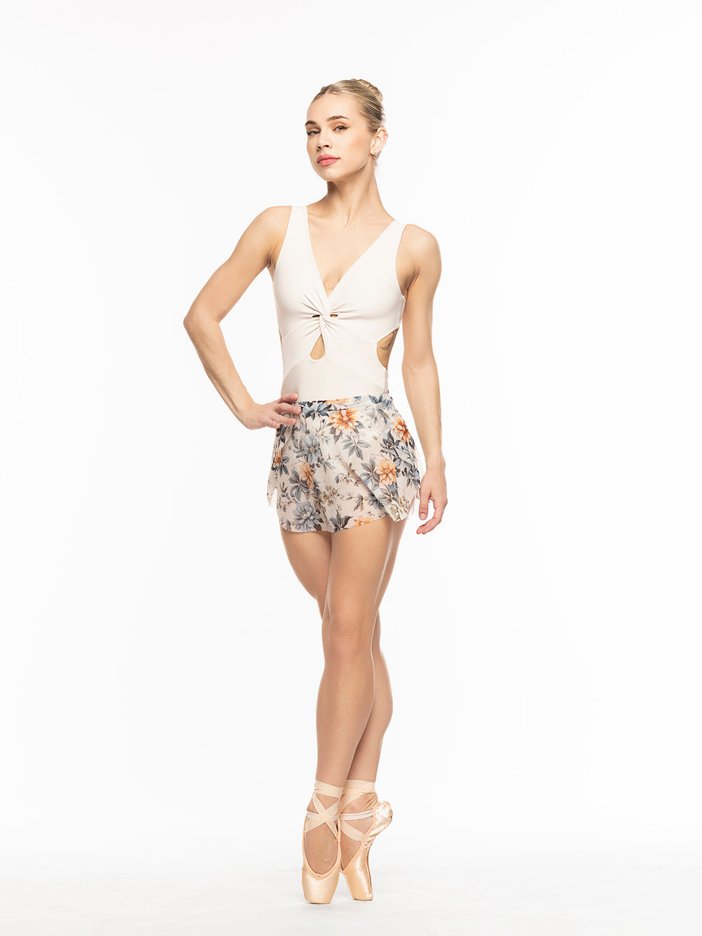 Model 1 is wearing a leotard and skirt in size adult small.