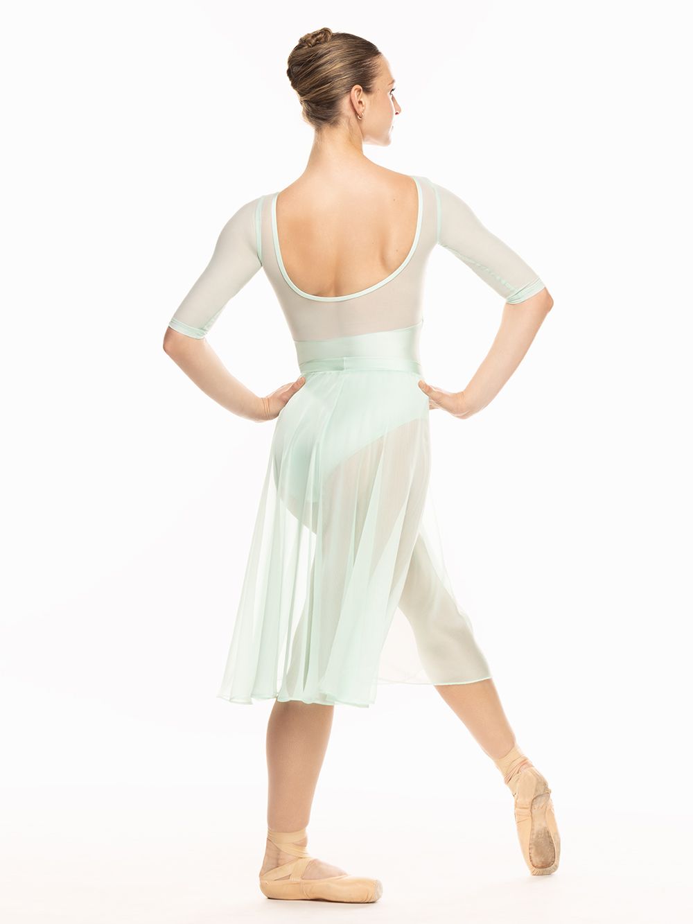Model is wearing leotard and skirt in adult size S and XS/S.