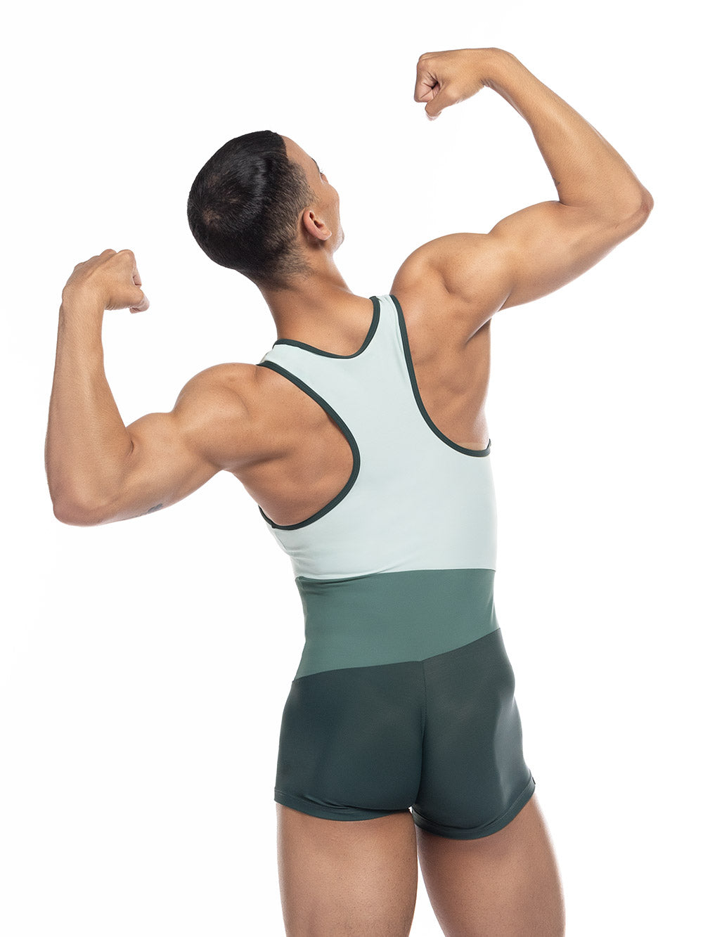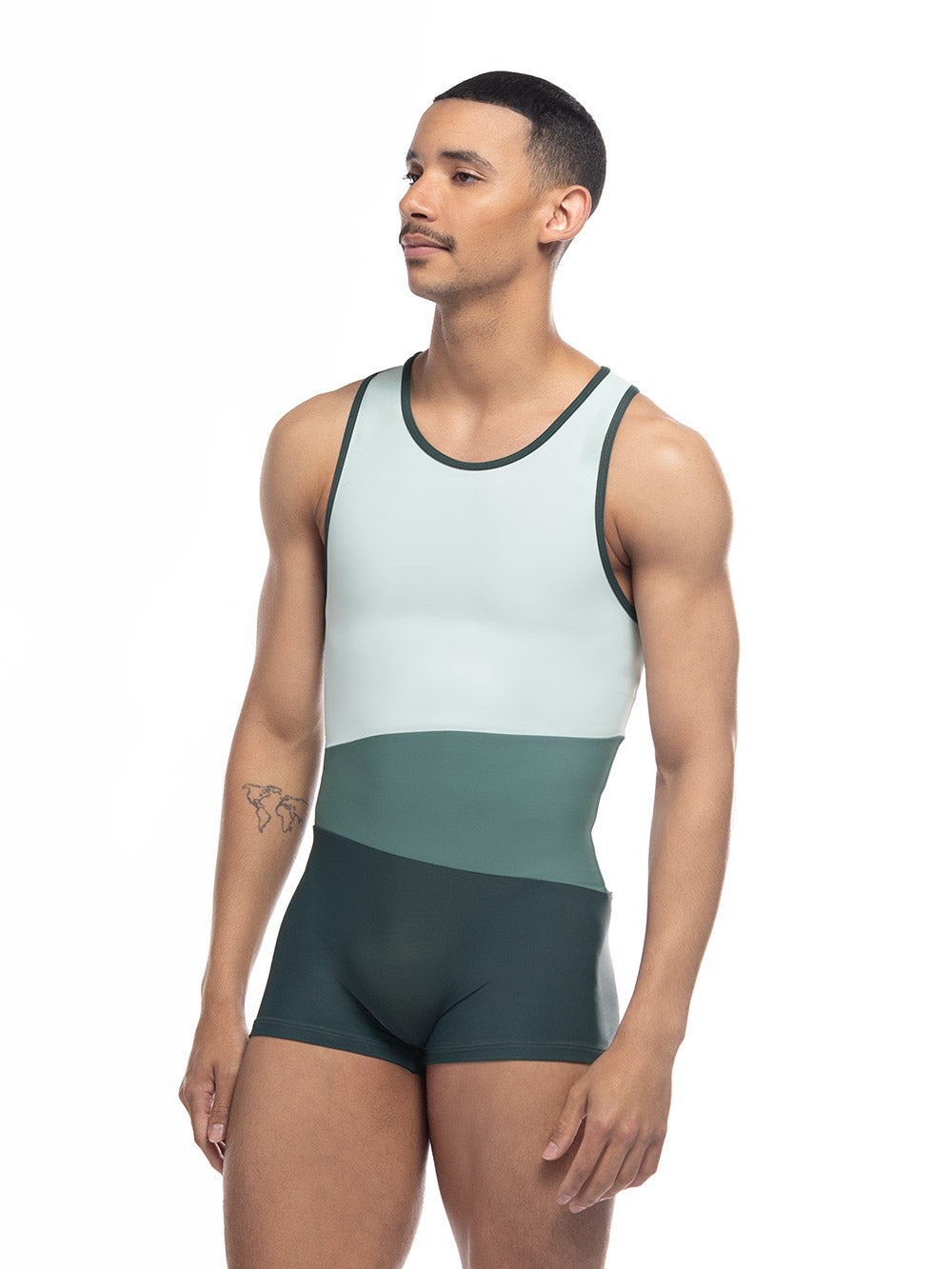 Experience the luxury of our new Troy Biketard, an edgy activewear piece designed for the fashion-forward dancer. This sporty onesie features a sophisticated blend of Sea Glass, Pale Cacti, and Dark Forest Matte fabrics. Its stylish design makes it easy to coordinate with our Tina Leotard Dark Forest RTW, allowing you to create a unified look that is ideal for any dance setting or performance.