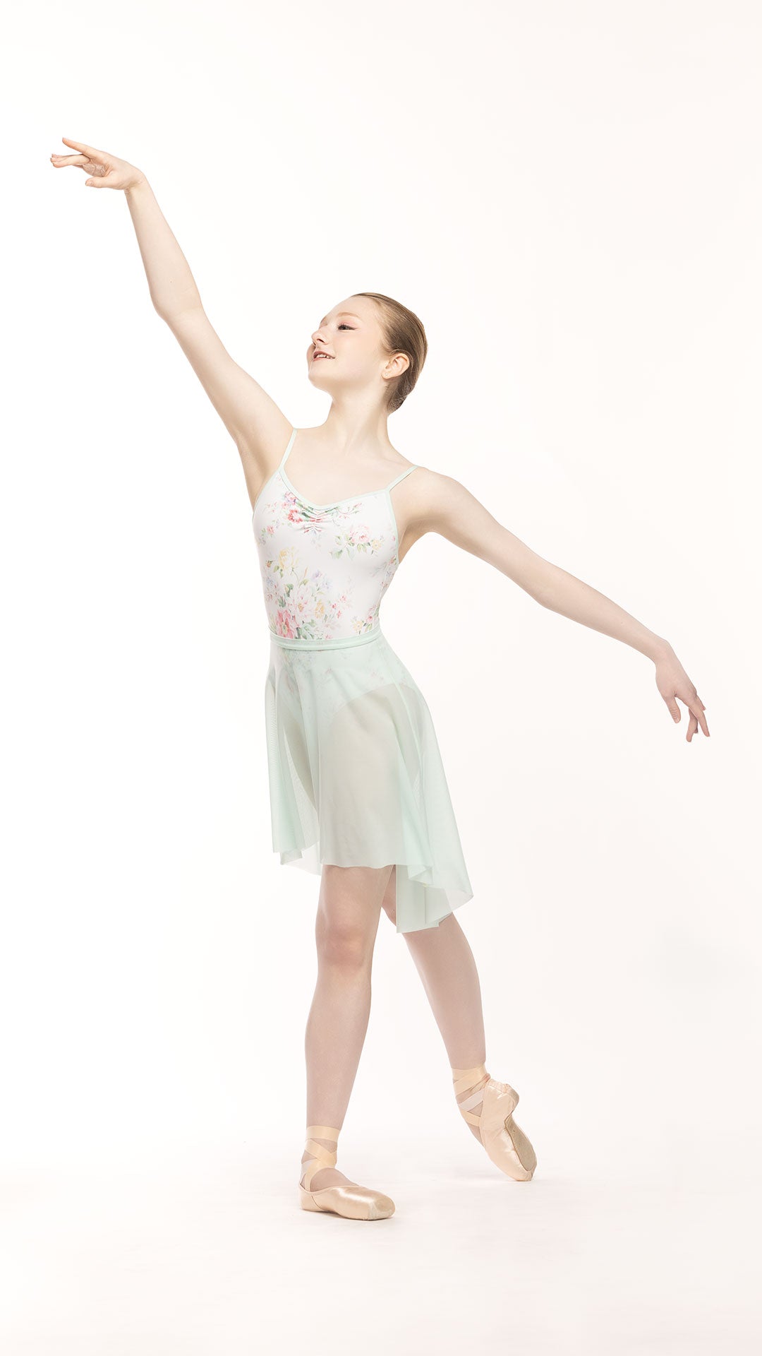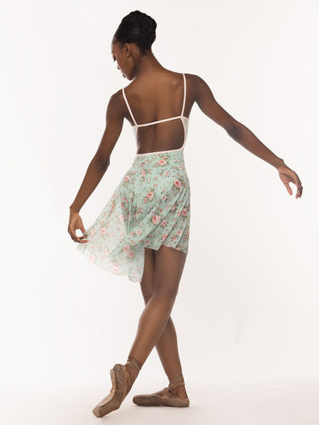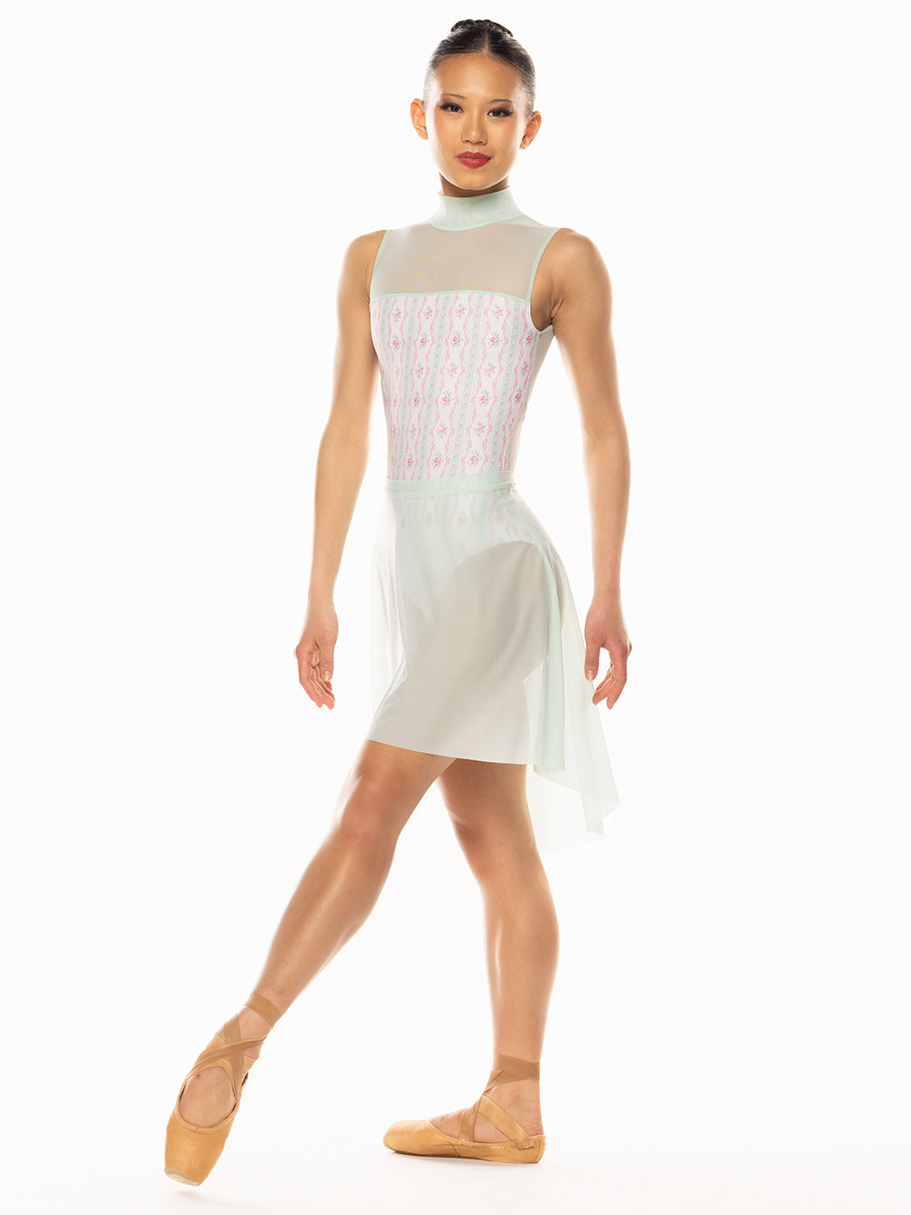 Model 1 is wearing a leotard and skirt in adult size M.