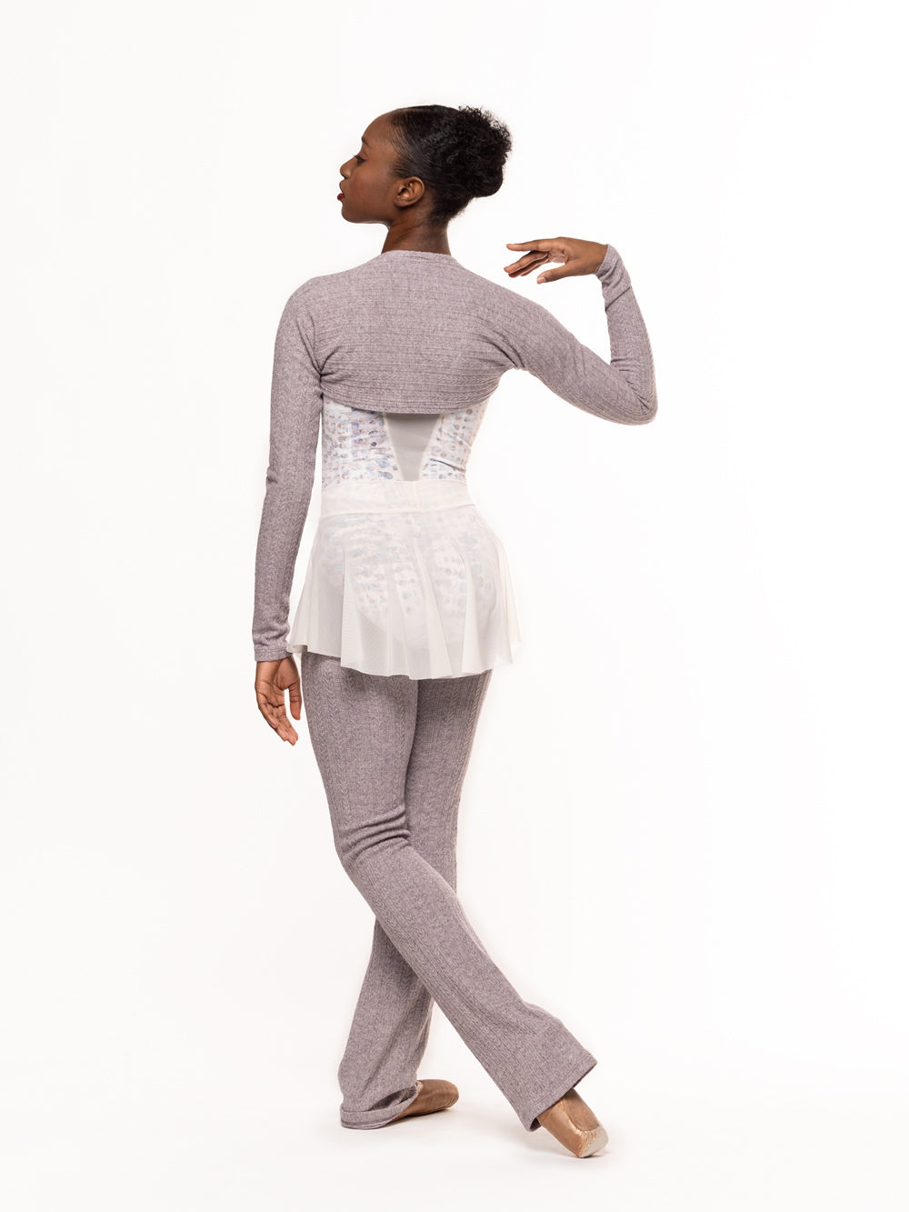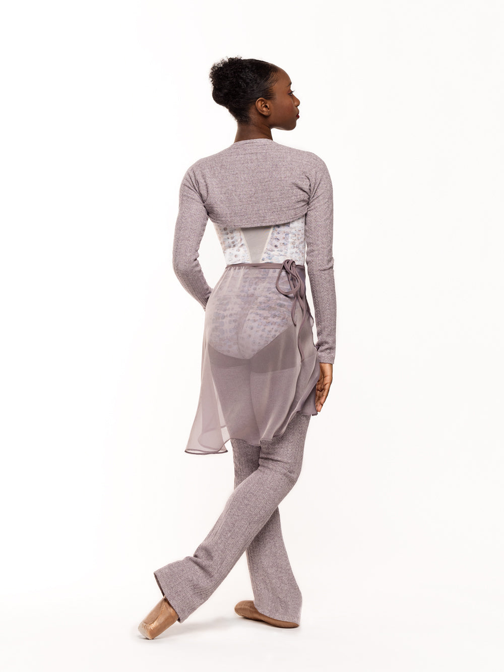 Model is wearing leotard and skirt in Adult size XS and leg warmers and shrug in Adult size XS/S.