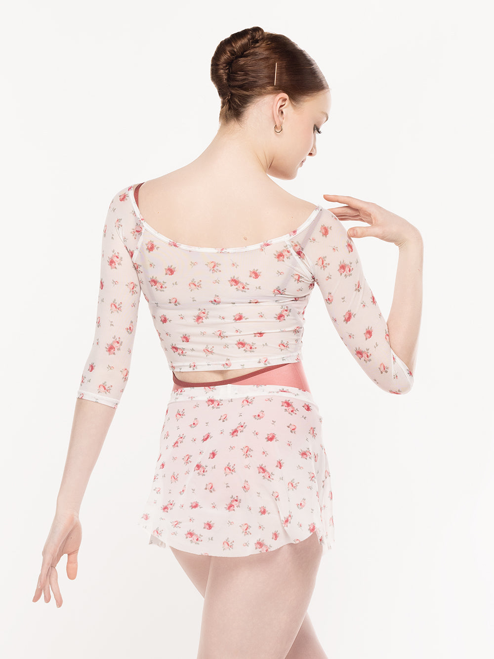 Model is wearing leotard, skirt, and crop top in adult size XS.