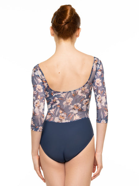 Model 1 and 3 are wearing A-Line Skirt Midnight Mesh Kids RTW in size Adult X-Small with Tri Leotard Tapestry RTW (discontinued) featuring S-31.5 Midnight Matte.