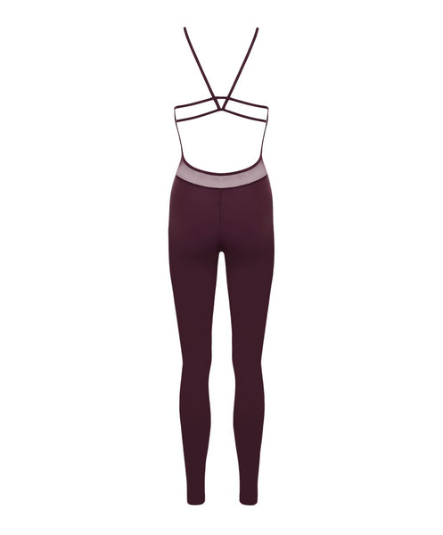 Sample Unitard is made with S-22 Sangria Matte Base and Top Front, and VEL-21.5 Spiced Wine Velvet Top Back and Trim.
