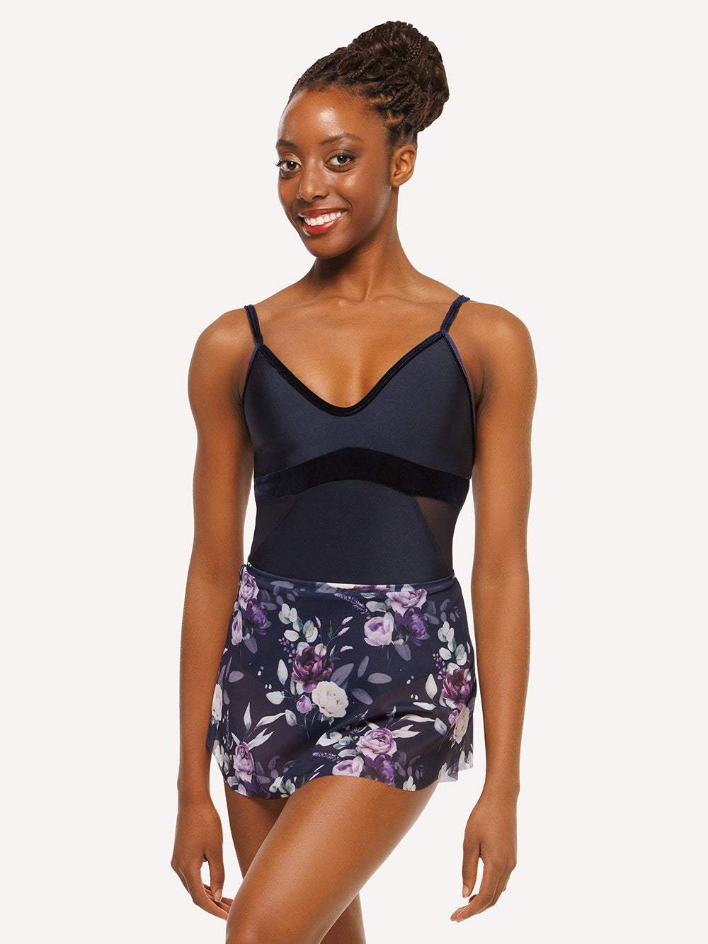 Model 1 is wearing a leotard and skirt in adult size XS.