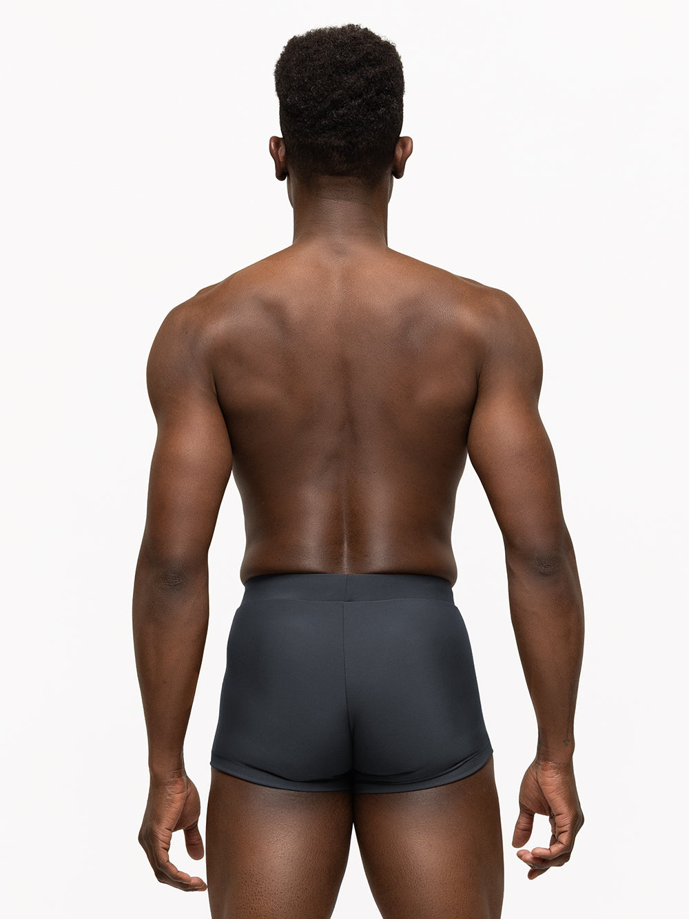 The Eric Shorts feature a 1.5 inch elastic waistband and a booty-length inseam. Now available in Graphite fabric.