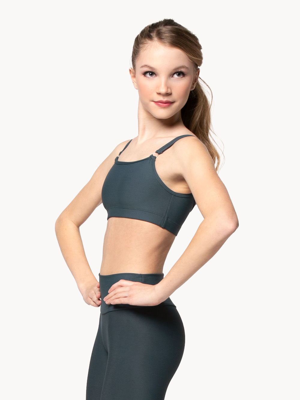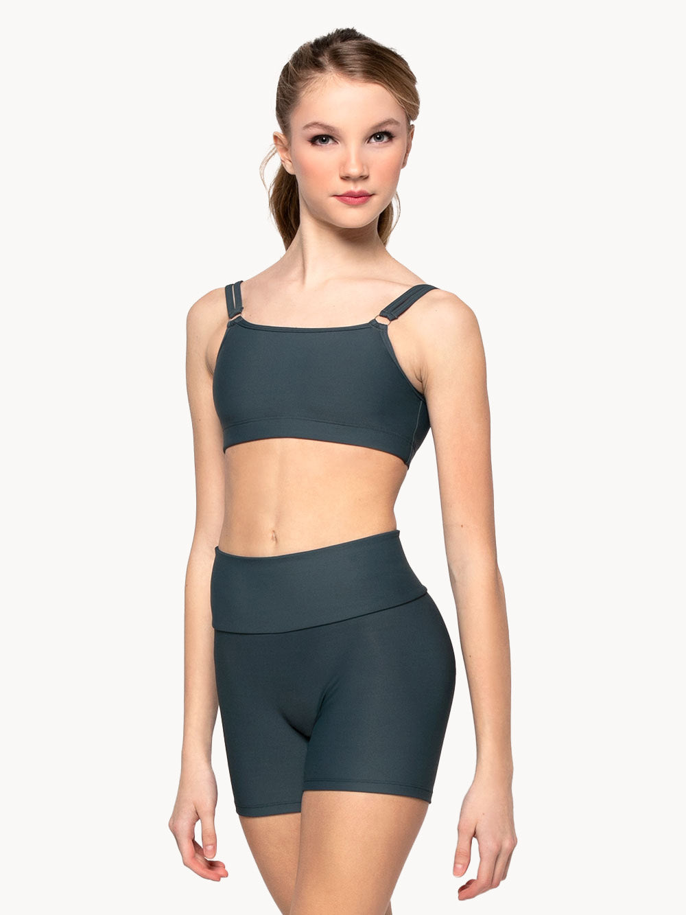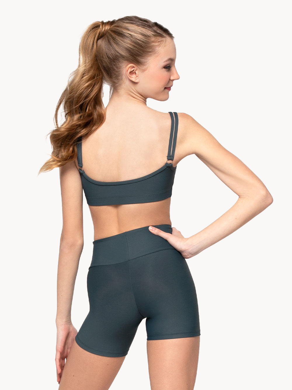 Our Farrah Crop Top in Soft Symphony is adorned with her Matte double camisole straps and silver ring details. Pair with the comfy Claire Shorts or Carmen Tights to take with you in your daily activities!