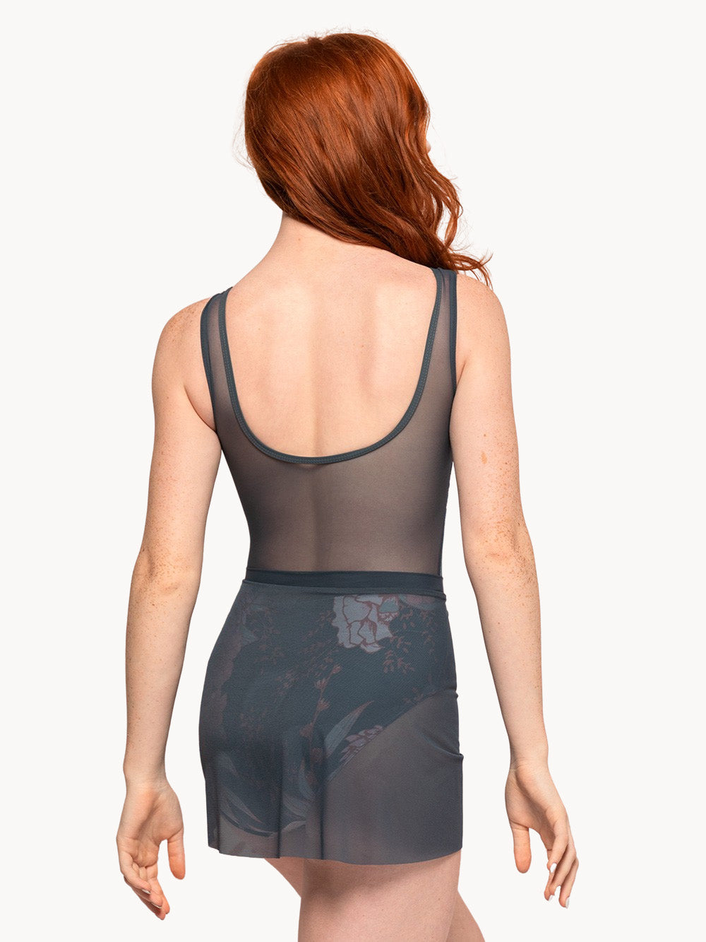 Model 2 is wearing a Brooke Tank Kids Leotard featuring Bats and Symphony Mesh with the Short Gathered Skirt in Symphony Mesh in Child Medium.