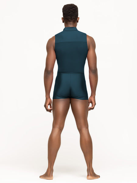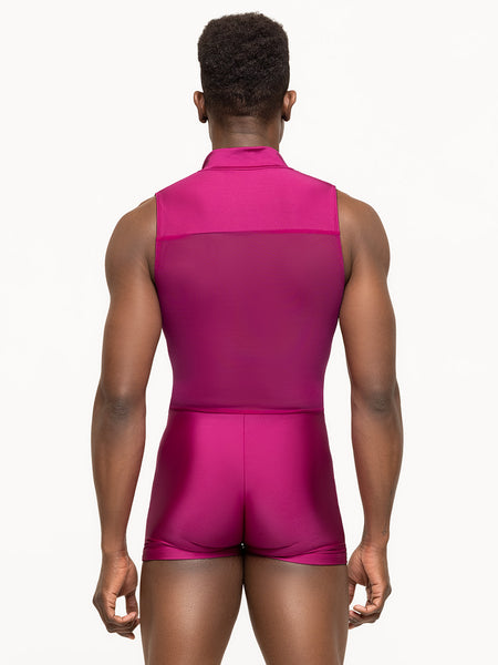 Sport the zip-front Geoff Biketard in our shiny Imperial! With its booty-length inseam and full back panel in matching Imperial Mesh, Geoff is both functional and unique for studio and stage.