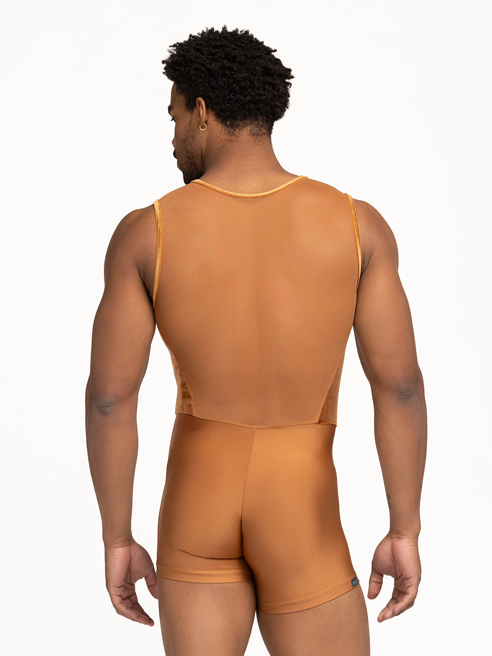 Model is wearing biketard in men's size M.