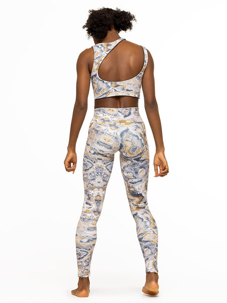 The Kerry Leotard is back in Antique Gold with Antique Gold Mesh! This contemporary style features a deep V front panel, T back, mock neck collar, and angled seams that create an elongated look. Finish your look with our Mid High-Low Skirt Desert Bloom Mesh RTW.