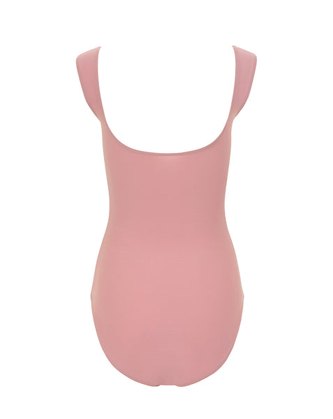 Model 1 is wearing a leotard in adult size S with an Alignment Belt.