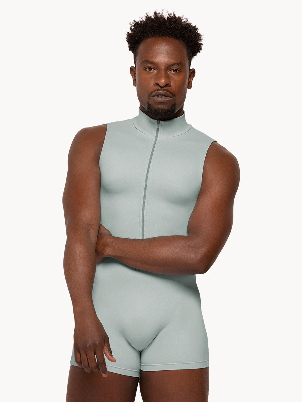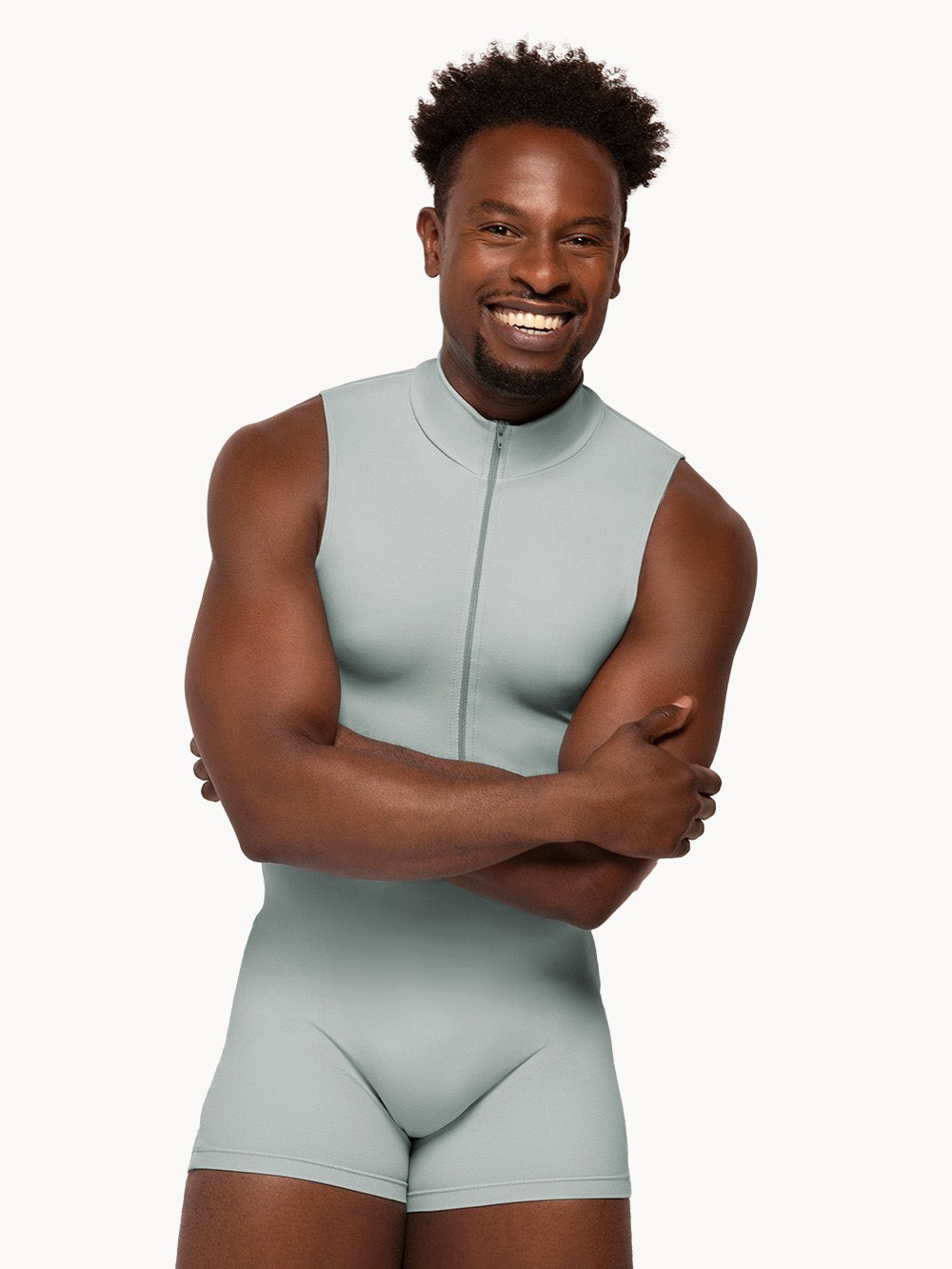 Everyone loves a zip-front biketard, especially ours! The Logan Biketard featured in booty length now comes in our Soft Misty Blue!