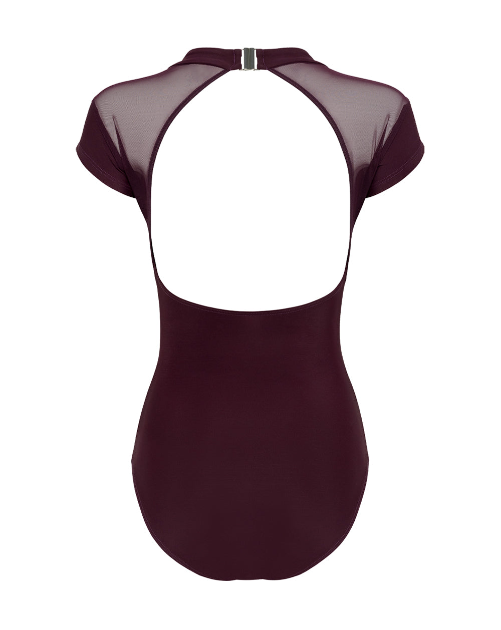 Sample features Sangria Matte Base, Collar, and Barely Over the Shoulder Sleeves, with Sangria Mesh Top Front and Top Back.