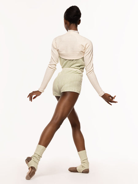Model 2 and 3 are wearing Shrug and Ankle Warmers in Adult size XS/S, and Knit Biketard and Leotard in Adult size XS.