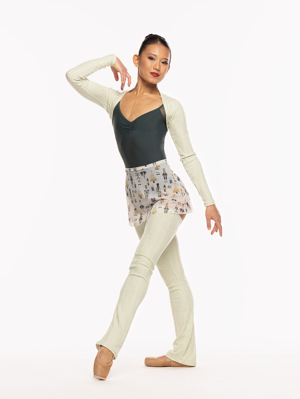 Model is wearing Leg Warmers and Shrug in size Adult XS/S, and Leotard and Skirt in size Adult XS.