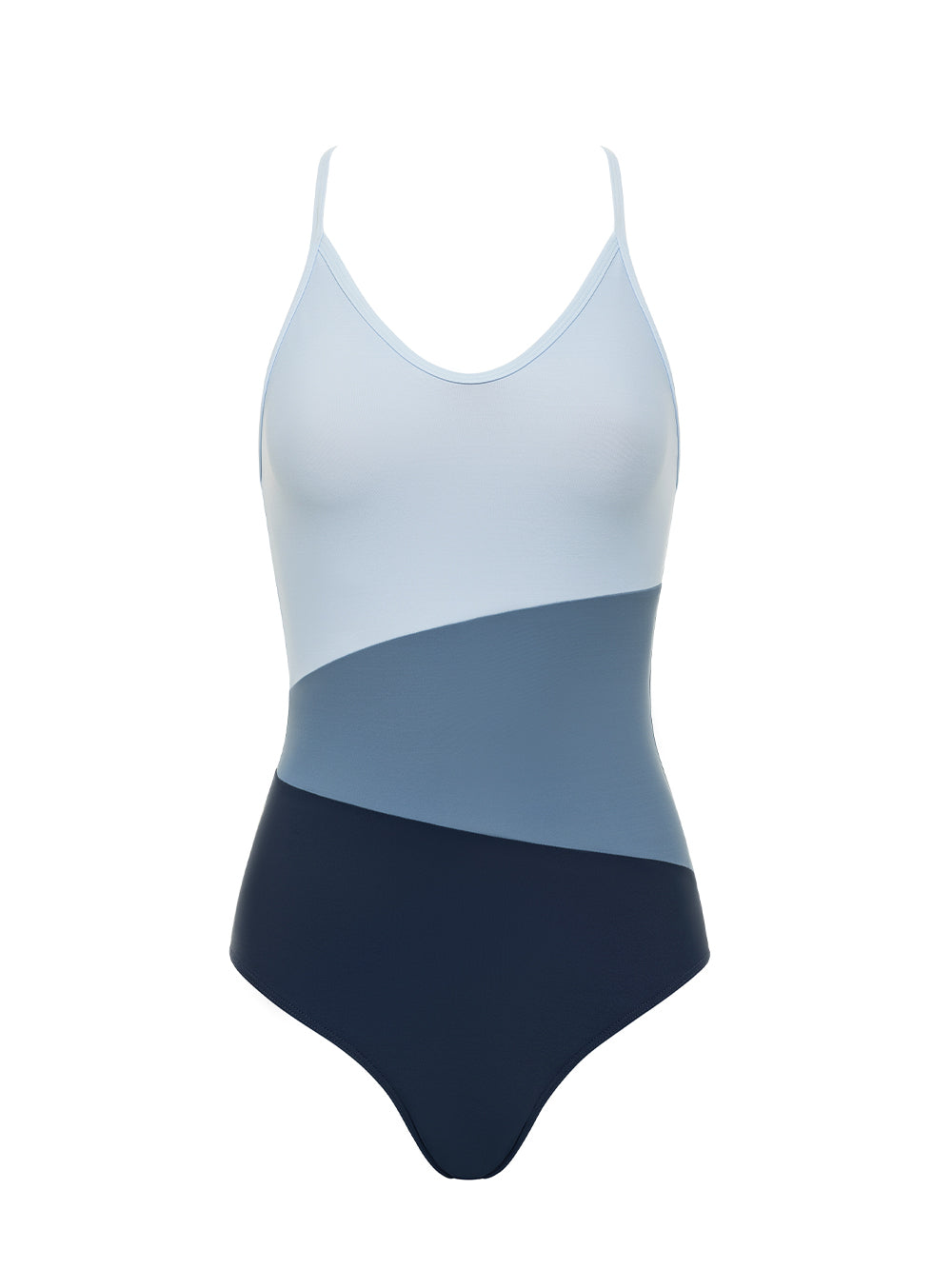 Our contemporary Tina Leotard features a deep V neckline, racerback, and asymmetrical panels for the perfect blend of sporty and sophisticated.